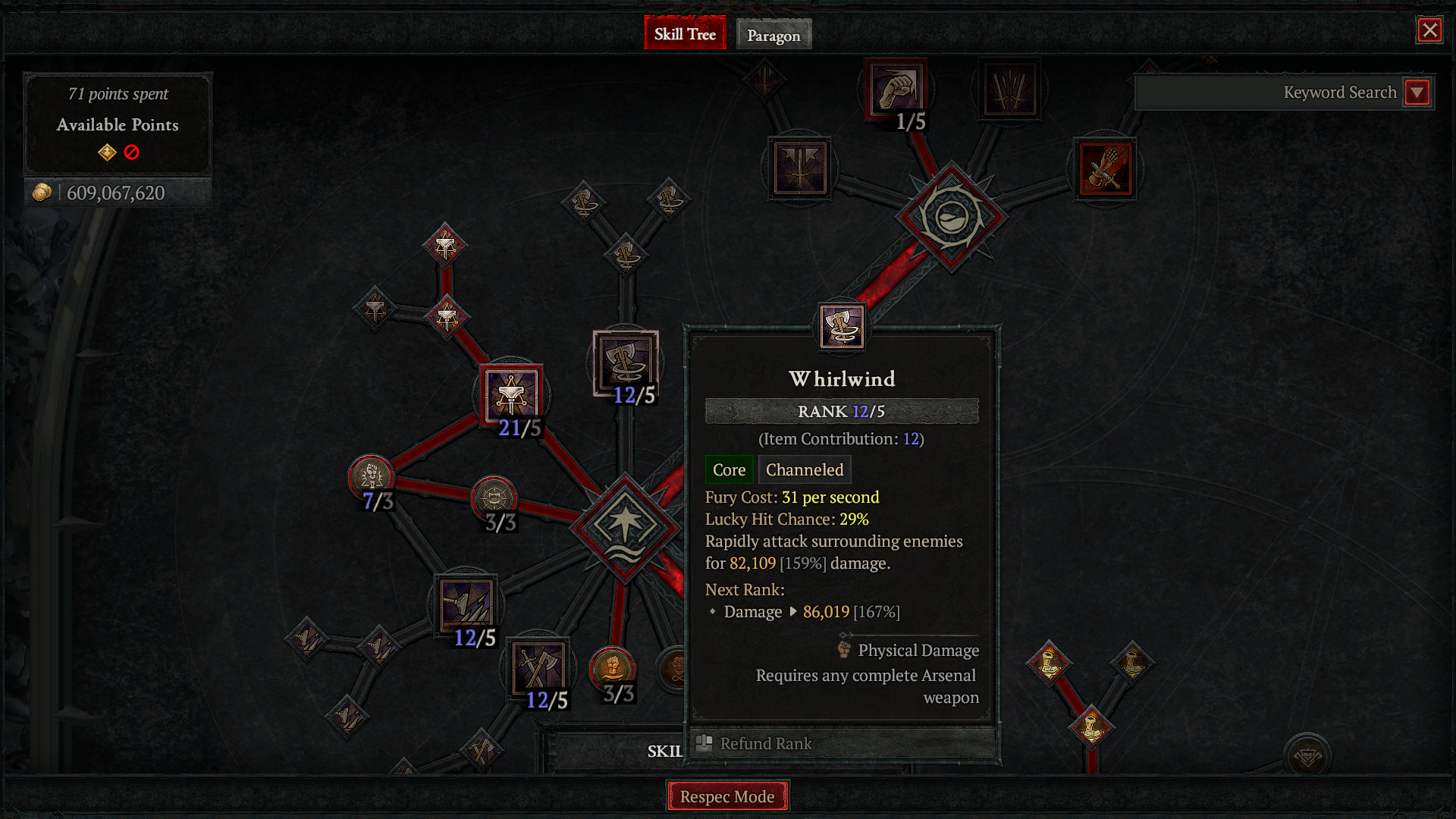 Когда дело доходит до максимизации вашего урона, переключайтесь между использованием двуручного булавы и древкового оружия, в зависимости от того, у какого из них в данный момент лучшие характеристики. Если вы используете древковое оружие для своей атаки Whirlwind, убедитесь, что экипировали двуручную булаву в слоте Техники (или поменяйте их местами), чтобы гарантировать получение всех доступных бонусов.