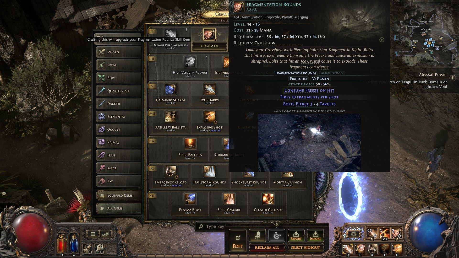 Бронебойные пули отлично подходят для быстрого уничтожения групп врагов, особенно в сочетании с функциями Цепи и Взрыва Брони. Добавление Самоцвет Поддержки Кровотечения – который можно получить с помощью Малого Ювелирного Сферы – создает мощную комбинацию с умением Вестник Крови, значительно увеличивая его урон по области.