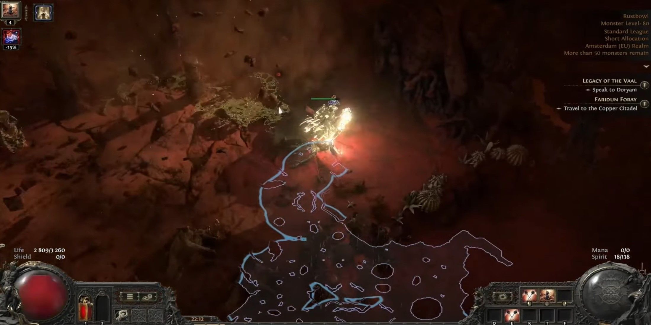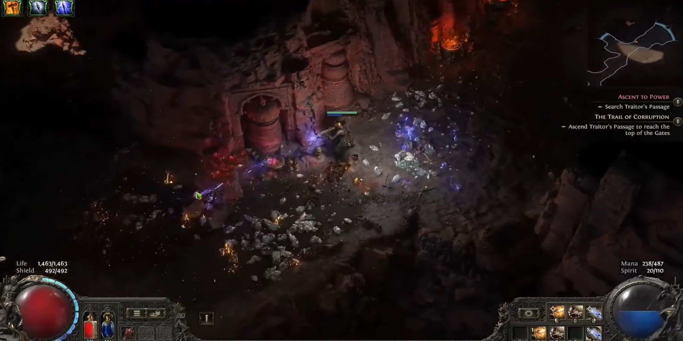 По своей сути эта сборка колдуньи в основном сосредоточена на нанесении урона способностью Spark. Однако то, что отличает её как оптимальную для эндгейма конфигурацию, — это улучшенная выживаемость за счет синергии между навыками Time Freeze и Time Snap. Эти умения принадлежат классу Chronomancer, чтобы получить доступ к обоим, нужно инвестировать все восемь очков восхождения. Time Freeze оказывает сильное воздействие: он временно останавливает время у пораженных врагов. В свою очередь, Time Snap полезен для сброса перезарядки ваших способностей, что позволяет вам использовать оба навыка последовательно. Так вы сможете держать противников замороженными во времени до их гибели.